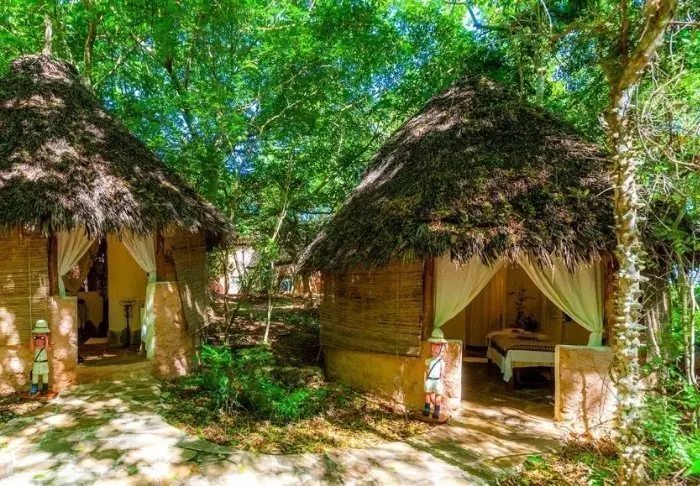 Tawi består av 13 ”stugor” som alla är elegant inredda i en rustik stil och har massor av charm. Samtliga rum har både dusch och badkar på badrummet, och på verandan finns det plats att mysa med en bra bok. På Tawi är väggarna av sten medan dörrar och fönster består av myggnät. Du har alltså komforten från ett riktigt, murat rum samtidigt som du kan höra ljuden och känna dofterna utifrån på nätterna. Det är värt att bemärka att rummen har relativt öppna badrum så Tawi är bäst lämpat för par.