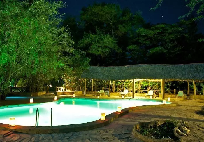 Lodgen har ett eget vattenhål som lockar djuren till sig, och för människor är det en bra pool som man kan svalka sig i. Här finns restaurang, poolbar och massagemöjligheter. Det finns även en liten souvenirbutik i lodgen.