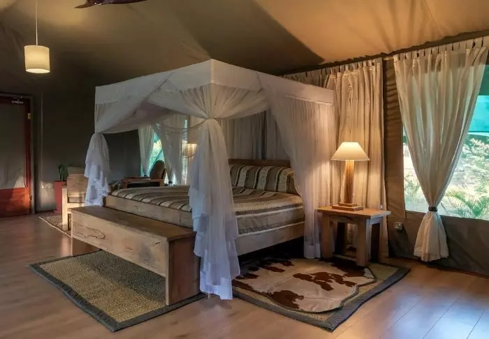 De stora tälten erbjuder gott om plats för ditt bagage och är mycket trivsamt inredda. Alla tält har egen veranda och fasta golv både ute och inne, vilket ger känslan av att bo på ett rum – med kanvasväggar. Det finns wifi i alla tält.