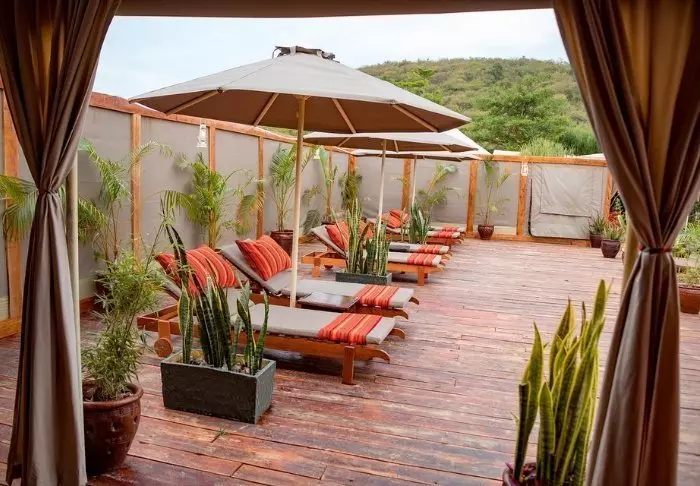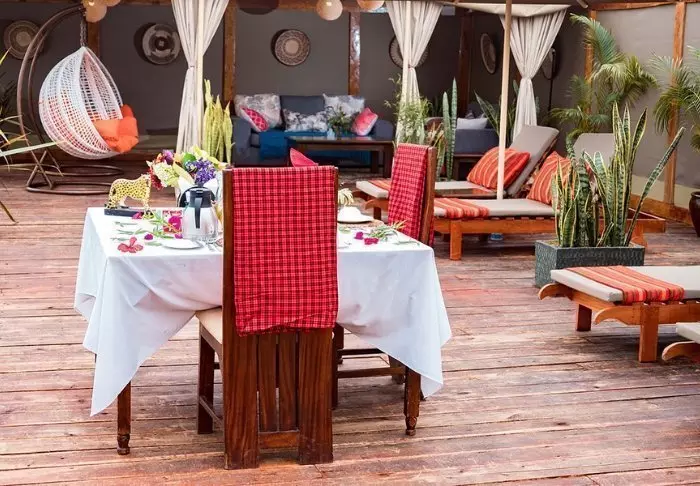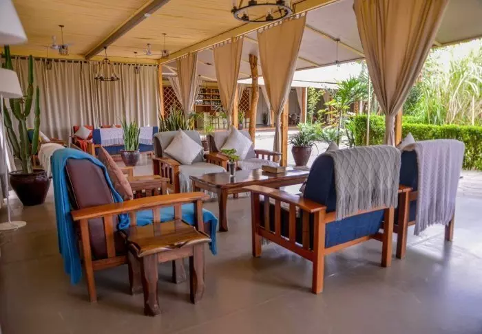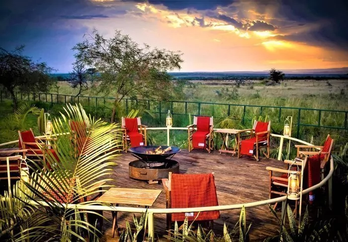 I de gemensamma utrymmena hittar du både mat- och loungetält, som är trivsamt inredda med mjuka fåtöljer, mattor och kuddar i massajernas vackra färger. Det finns två bålområden utomhus varifrån du kan se den vackra solnedgången med en svalkande drink i handen.