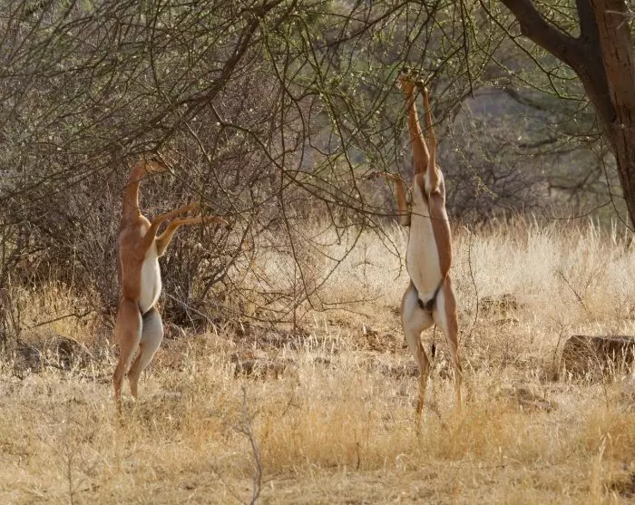 Efter lunchen väntar resans första game drive. Samburu är känd för flera olika djur som bara finns här: nätgiraffen, grevyzebran, giraffgasellen, den stora gemsbocken, somaliastrutsen och många fler. På den här safariresan kan du faktiskt uppleva hela tre olika giraffarter: nätgiraffer i Samburu, rothschildgiraffer vid Naivashasjön och massaigiraffer i Masai Mara.