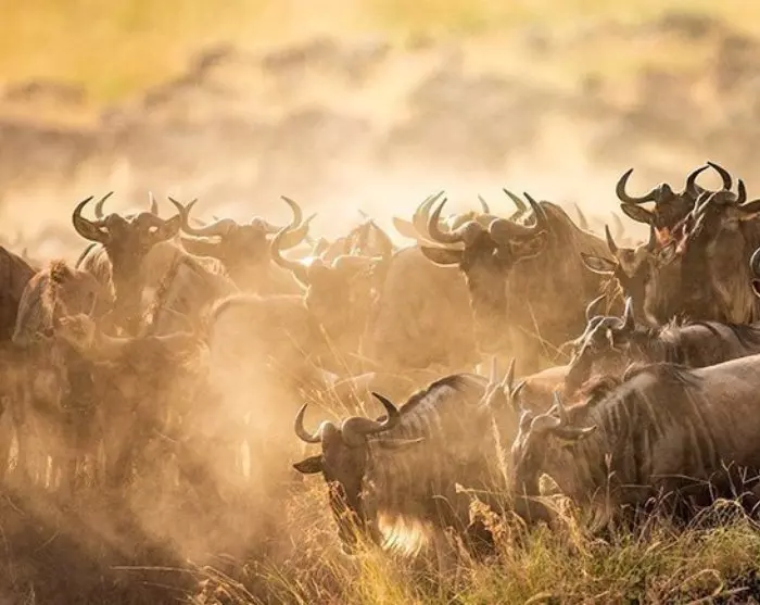 Från juli till oktober kan du uppleva den 1 200 km långa vandringen i jakt på vatten och färskt gräs för över en miljon gnuer, hundratusentals zebror och en massa Thomson-gaseller. Det är under denna vandring som en del djur faller offer för de enorma nilkrokodilerna när de korsar Marafloden.