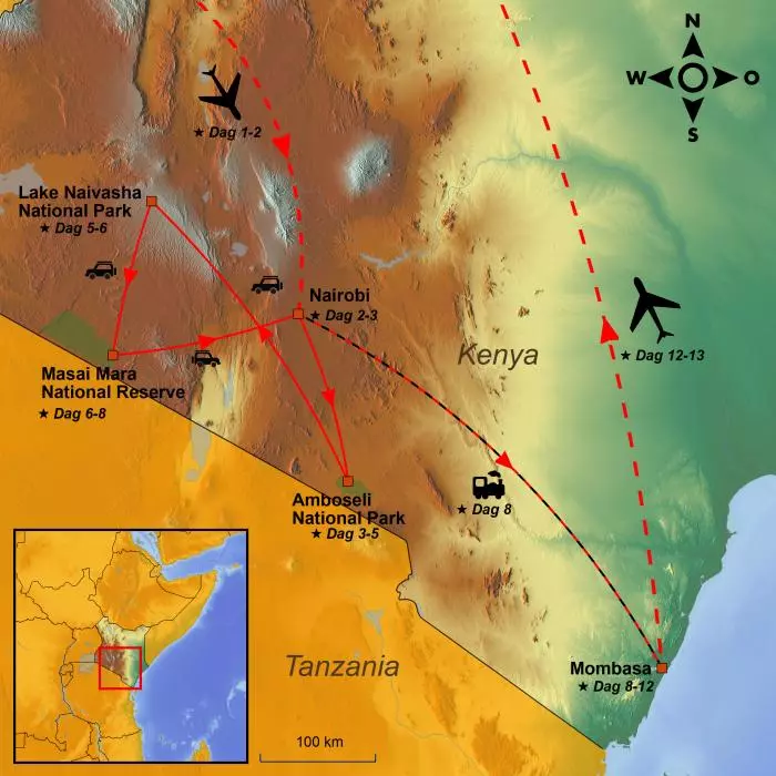 På den här resan upplever du Kenyas största höjdpunkter: Amboseli, Lake Naivasha och Masai Mara. Resan avslutas med en avkopplande semester på den exotiska ön Zanzibar.