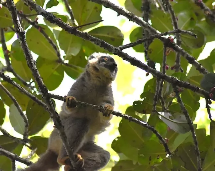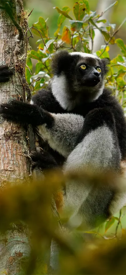 Förutom din guide åtföljs du ofta också av en “spårare”. Spåraren går längst fram och lokaliserar Indri-lemurfamiljerna, och därefter tar ni er fram genom skogen för att se dem. De brukar sitta högt upp i träden, där de har tillbringat natten. Ta gärna med dig en kikare så att du kan se deras ludna armar klamra sig fast vid grenarna med nästan människoliknande händer.
