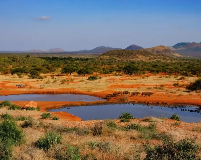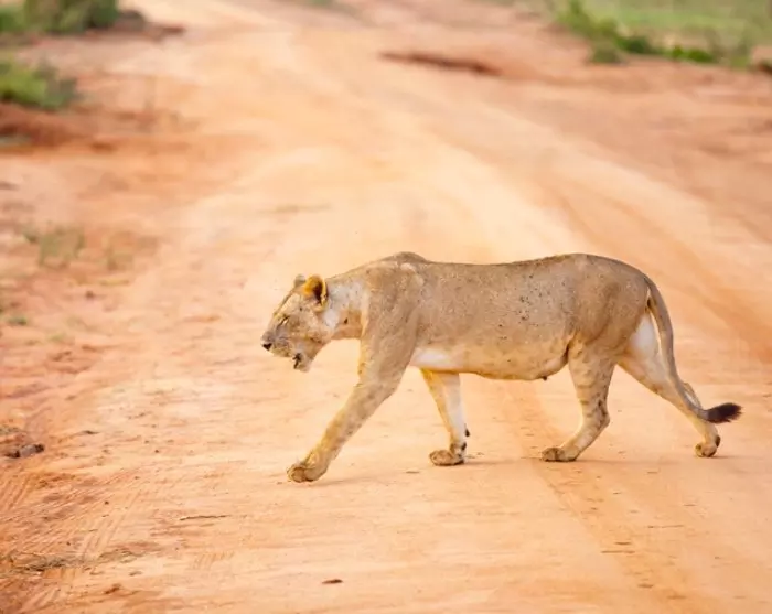 Från en av de minsta nationalparkerna i Kenya fortsätter resan till en av de största och äldsta parkerna: Tsavo East. På vägen från Amboseli till Tsavo East följer vi den asfalterade huvudvägen, men vi kommer snart fram till Tsavo East, och bilturen förvandlas till en game drive.