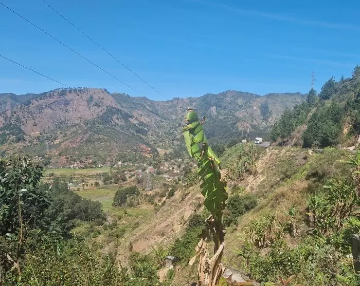 Efter ett par timmars körning genom det kuperade platålandskapet med alla risfält förändras landskapet. Bergen blir högre och skogarna tätare. Här och var kan du få en skymt av floden i botten på dalgångarna.