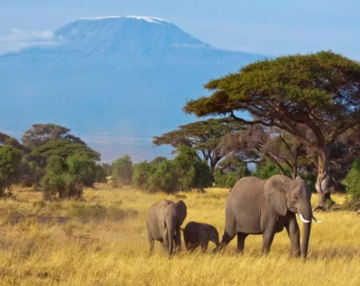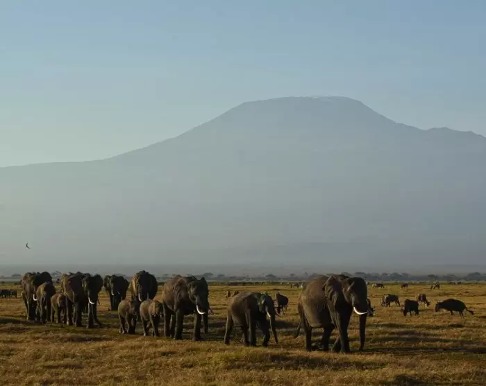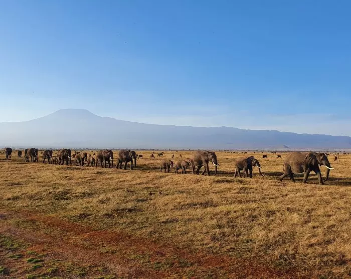 Nästan vart du än går har du utsikt över Kilimanjaro, som ligger i Tanzania, men som förmodligen fotograferas oftare från Kenya-sidan. I Amboseli kan du ha turen att ta det perfekta fotot på elefanter som går över det pannkaksplatta landskapet när solen går ner innan de ger sig in i skogarna vid foten av Kilimanjaro, där de tillbringar natten.