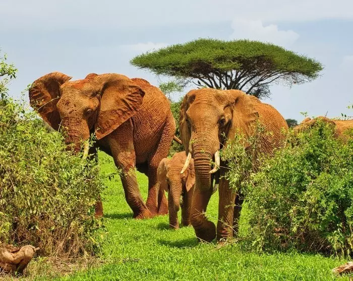 I Tsavo East är jorden klarröd, vilket ger djuren ett distinkt rödaktigt utseende. Det är lite konstigt första gången du ser en röd elefant!