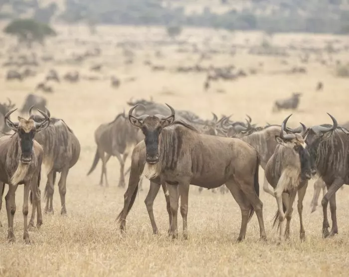 Det finns också mängder av gnuer och zebror – kuduer, impalor och gaseller trivs också bra här. Bytesdjuren drar också till sig både lejon, leoparder och hyenor, och om du har riktig tur kanske en vildhund kommer förbi.