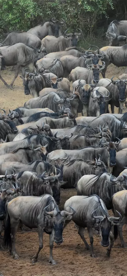 Under de kommande dagarna får du uppleva flera djur på nära håll från en skyddad landcruiser. Från juli till oktober kan du uppleva när över en miljon gnuer, ett par hundra tusen zebror och massor av Thomsongaseller vandrar 1 200 km i det kenyanska området under den stora migrationen. Det är under den här vandringen som en del gaseller blir offer för de enorma nilkrokodilerna när de korsar Marafloden.