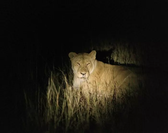 Senare väntar ännu en exklusiv aktivitet, som endast är möjlig utanför själva nationalparken: en game drive på kvällen. En stor del av djuren på den afrikanska savannen är som mest aktiva på natten. Nu steker inte solen och växtätarna kommer fram för att äta i skydd av mörkret. Detta känner de opportunistiska kattdjuren till mycket väl, och passar på att komma fram från sina viloplatser. Därför kan man på kvällen ha turen att se både lejon och hyenor på vandringtur genom bushen.