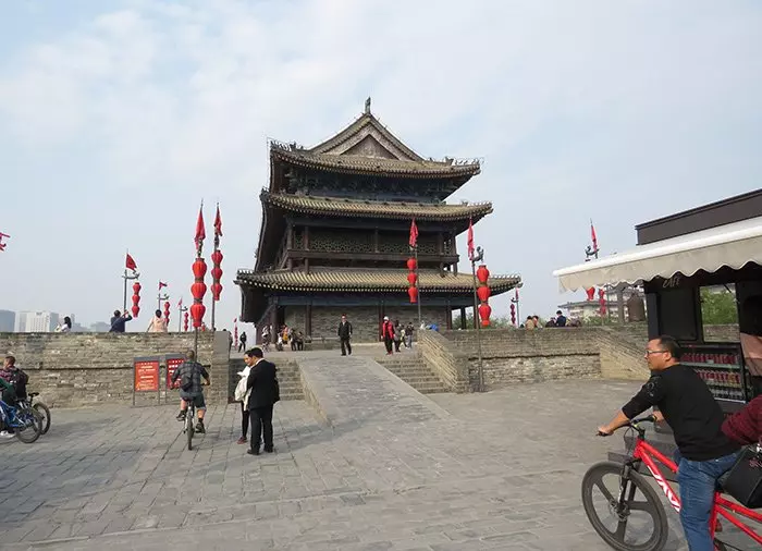 Xi’ans stadsmur är nog stadens största stolthet. I Kina har i stort sett alla gamla stadsmurar rivits ner, men i Xi’an har man bevarat sin genom att restaurera den och rensa vallgravarna. Lokalbefolkningen använder muren för en snabb promenad eller löprunda efter arbetet och skolan, medan turister tar sig runt på cykel.