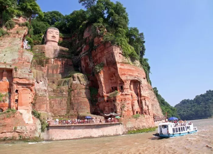 Jättebuddhan är uthuggen i en röd sandstensklippa där floderna Dadu, Minjiang och Qingyi möts. Enligt kinesisk sägen försvann många fartyg spårlöst i strömvirvlarna där floderna möts på grund av det oroliga vattnet. En munk vid namn Hai Tong föreslog därför att man skulle bygga en jättestor sittande buddha, som skulle vakta över fartygen och lugna de onda flodgudarna. Under flera år bad han om medel för att påbörja projektet, som inleddes under Tang-dynastin år 713. Tyvärr dog munken när projektet bara var halvfärdigt. Efter hans död stannade projektet upp på grund av bristande finansiering. Först 70 år senare beslutade den lokala guvernören, Wei Gao, att sponsra projektet och statyn färdigställdes år 803.