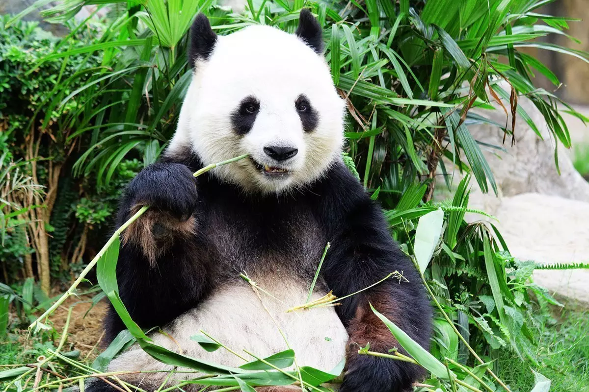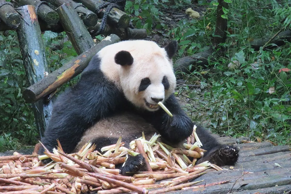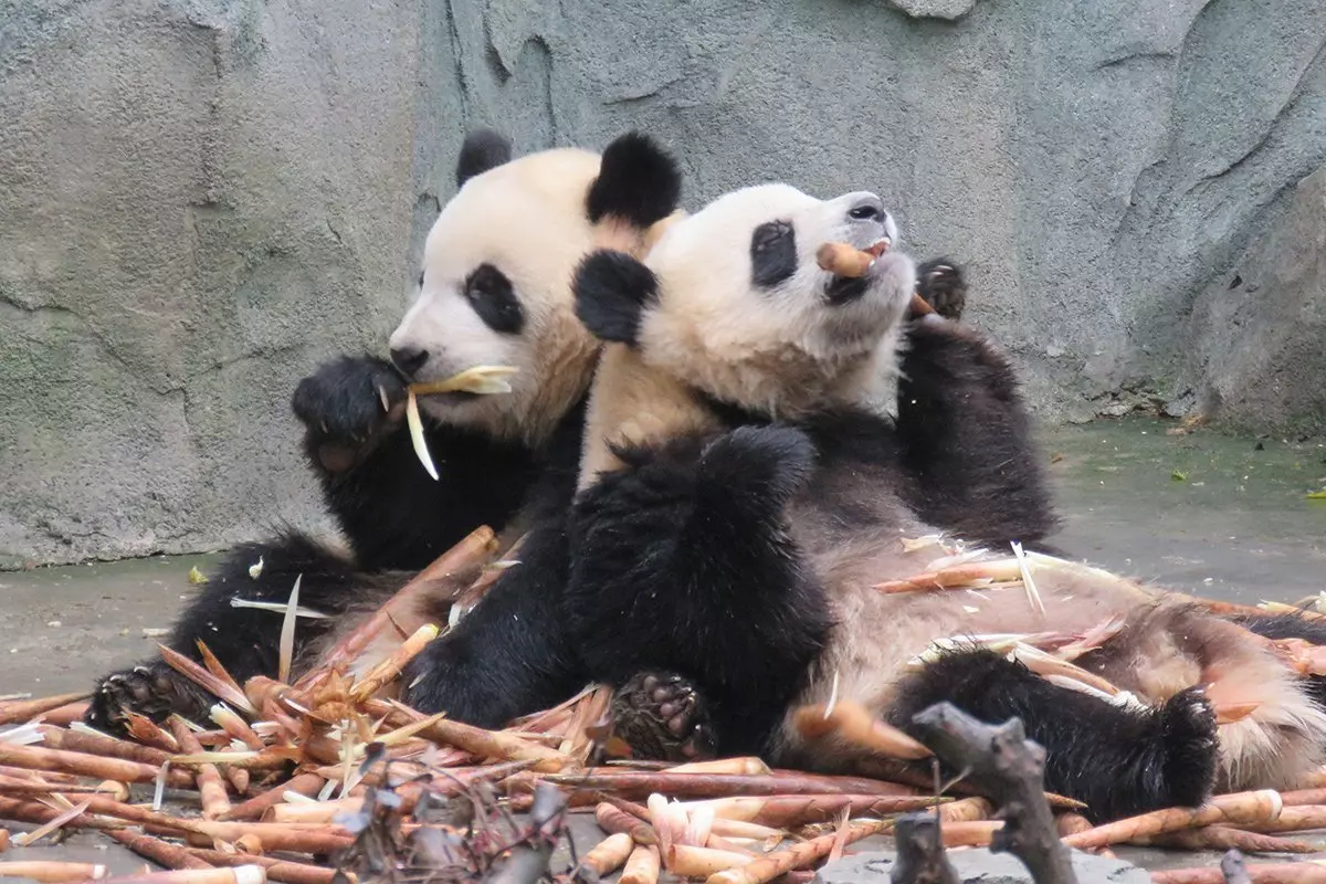 Pandor ägnar upp till 15 timmar om dagen till att äta. Bambu innehåller inte särskilt mycket näring, så en vuxen panda måste äta mellan 15 och 20 kg varje dag för att få i sig det den behöver för att överleva. Det är också därför du kommer att se att de vuxna pandorna är lugnare och mest ligger och sover eller äter, medan de yngre pandorna leker mer med varandra.