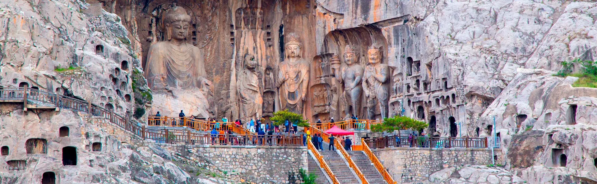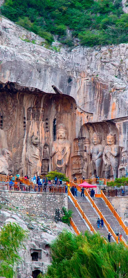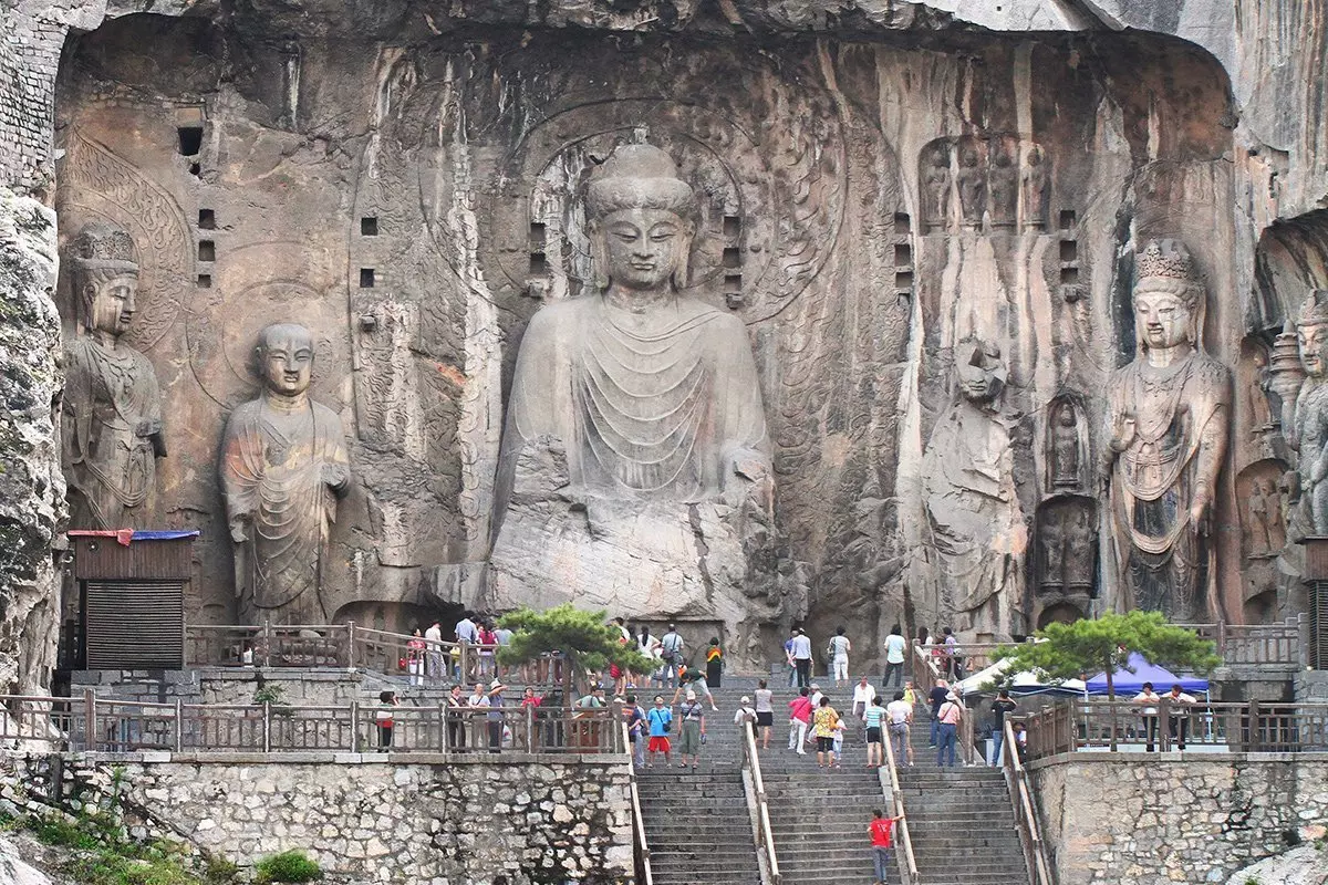 Du besöker de viktigaste grottorna, bland annat Fengxian-grottan som höggs ut under åren 672–675 under Tang-dynastin. Fengxian-grottan är den största och med marginal den mest imponerande av dem alla. Det är här du hittar den 17 meter höga buddhan med 2 meter långa öronsnibbar. Normalt sett är buddhafigurer maskulina, men ansiktet på denna Vairocana-buddha (Losana) är mycket feminint och sägs tillhöra kejsarinnan Wu Zetian från Tang-dynastin. Buddhafiguren omgärdas av de två lärjungarna Ananda och Mahakasyapa samt två bodhisattvor.