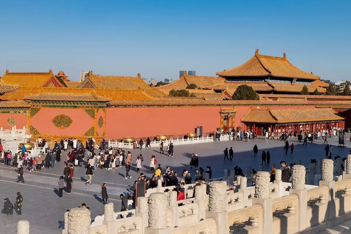 Du får tid att gå runt lite på torget på egen hand och sedan är det dags för Förbjudna staden, som öppnar sig bakom de röda, tjocka murarna. Det mäktiga kejsarpalatset byggdes under 1400-talet av kejsaren Zhu Di, efter att han flyttade huvudstaden från Nanjing till Beijing.