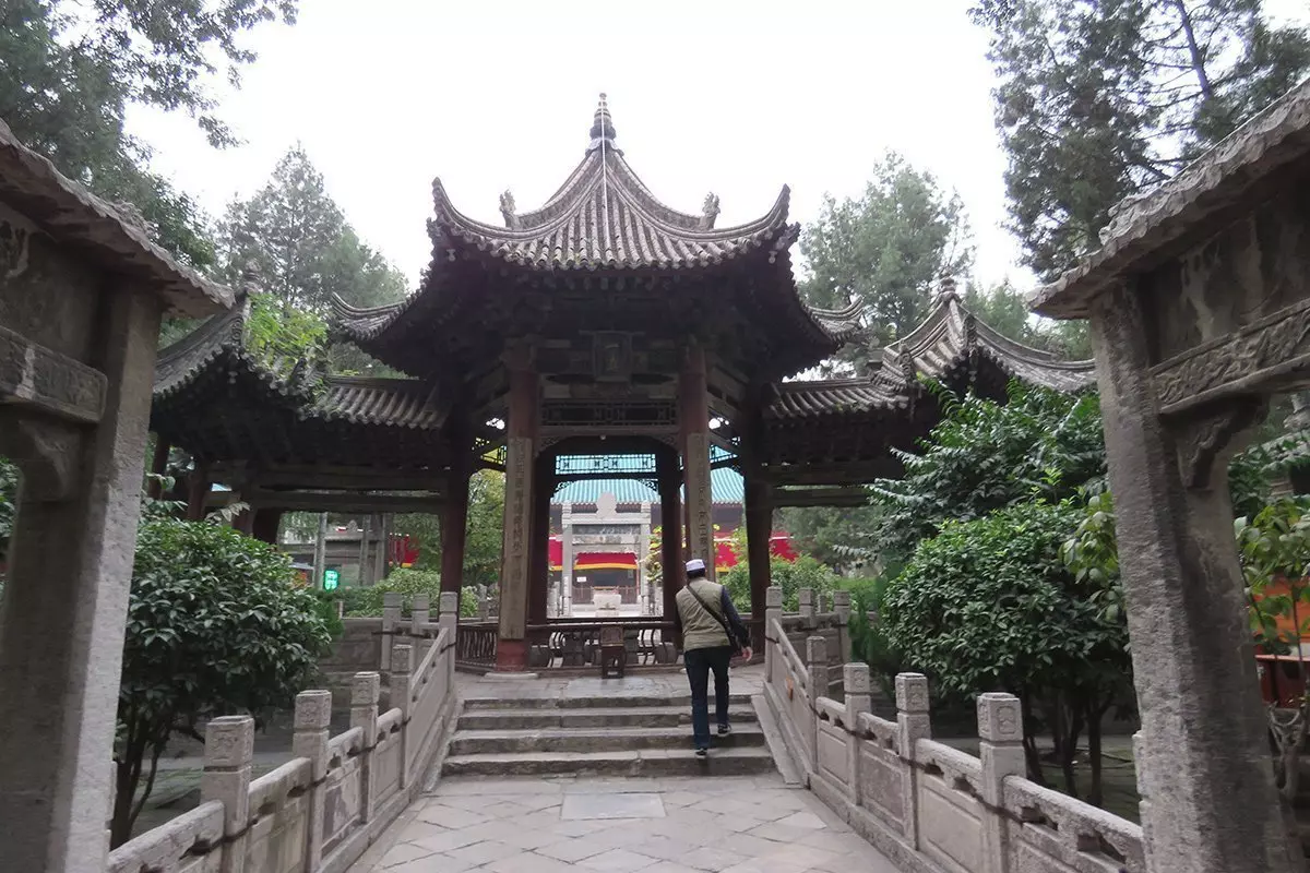 Det första stoppet på promenaden är den stora moskén, som är den äldsta och största moskén i Kina. Moskén byggdes ursprungligen år 742 under Tang-dynastin, när mängder av arabiska handelsresenärer besökte staden. Sedan dess har den renoverats och byggts ut flera gånger. Även om det är en moské är byggstilen tydligt kinesisk med sadeltak, trädgårdar och paviljonger – dock med inskriptioner på arabiska.