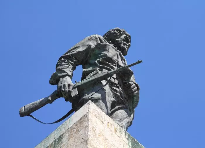 Första stoppet är revolutionstorget, där det står en bronsstaty av Che Guevara med den berömda texten ”Hasta la victoria siempre”. Bakom statyn ligger hans mausoleum och ett spännande museum om hans liv.