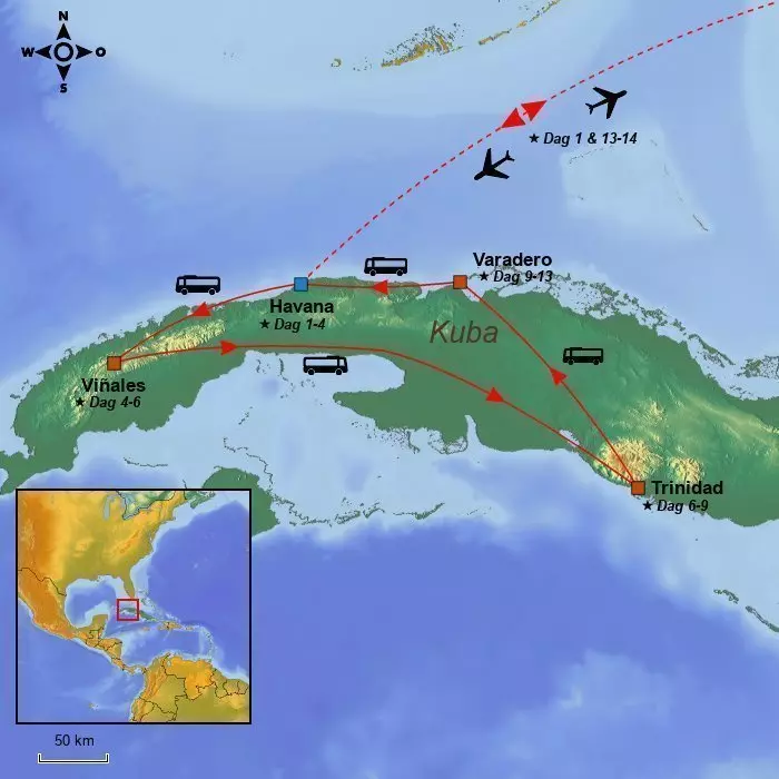 Resan startar i Kubas huvudstad Havanna där stadsbilden präglas av välbevarade, färgrika kolonialtidsbyggnader, trivsamma torg och gamla amerikanare.