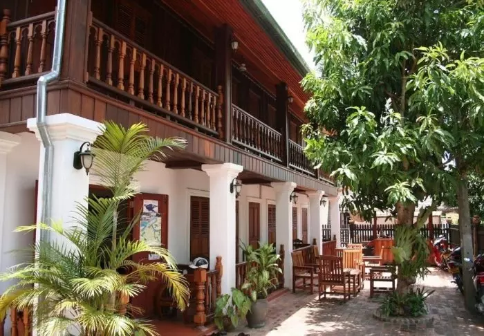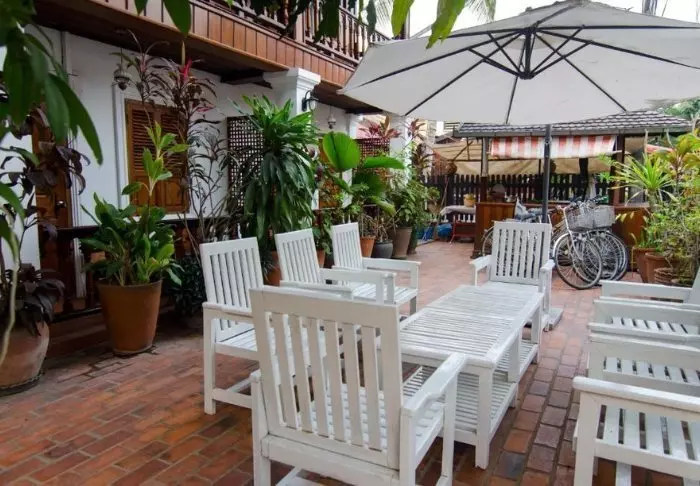 Hotellet är byggt kring tre kulturminnesskyddade byggnader och kombinerar traditionell laotisk arkitektur med en boutiqueinspirerad stil. De grönskande trädgårdarna och lotusdammen skapar en fridfull och avslappnad atmosfär, trots att stadens puls väntar precis utanför dörren.