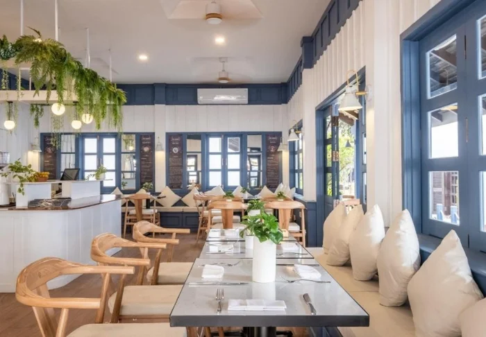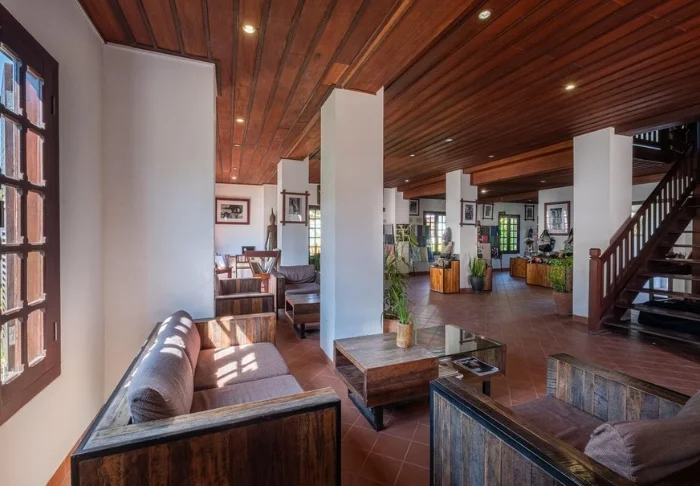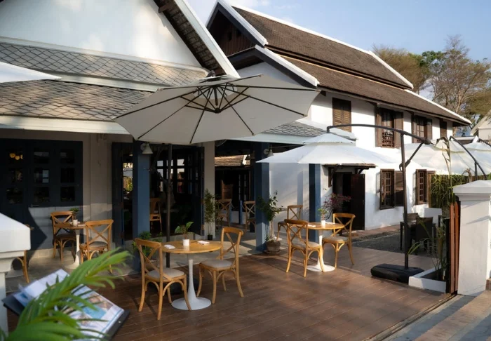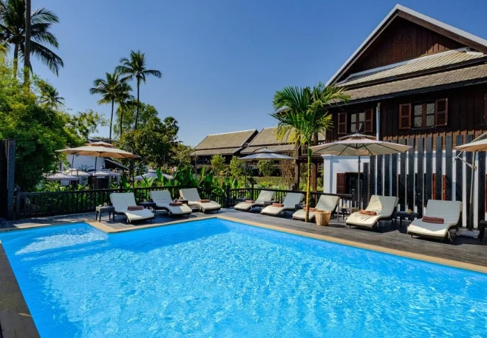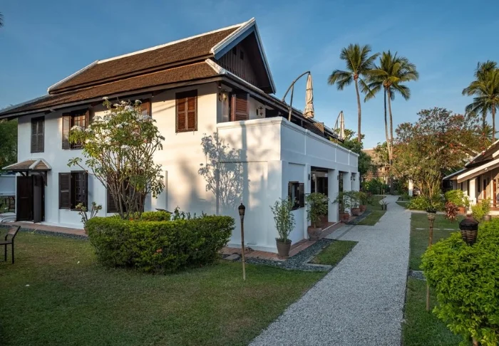 Hotellet är byggt kring tre kulturminnesskyddade byggnader och kombinerar traditionell laotisk arkitektur med en boutiqueinspirerad stil. De grönskande trädgårdarna och lotusdammen skapar en fridfull och avslappnad atmosfär, trots att stadens puls väntar precis utanför dörren.