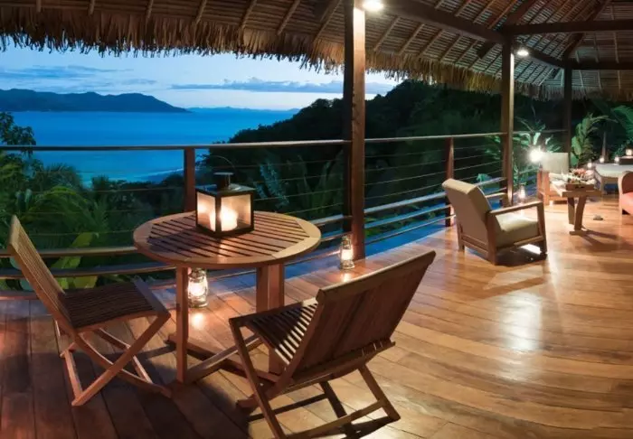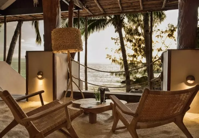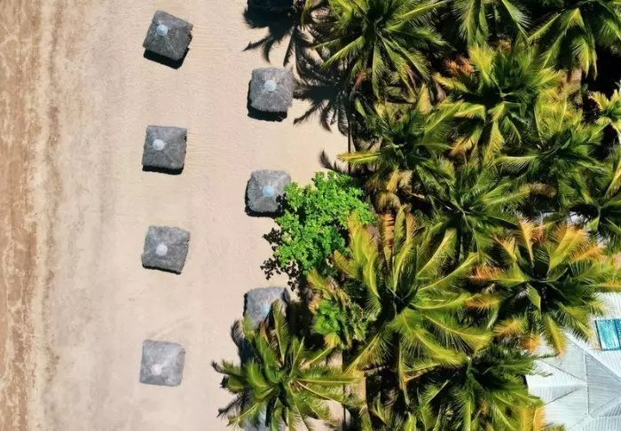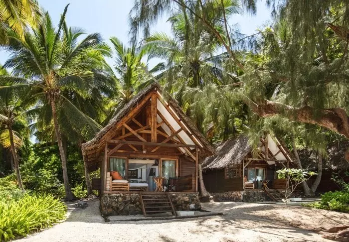 Resorten består av charmiga bungalower i mörkt trä, utspridda direkt på stranden bland blommande buskar och slingrande växter. Alla bungalower har en egen terrass med utsikt över havet eller trädgården, där du kan njuta av solnedgången med en drink i handen och (nästan) tårna i sanden.
