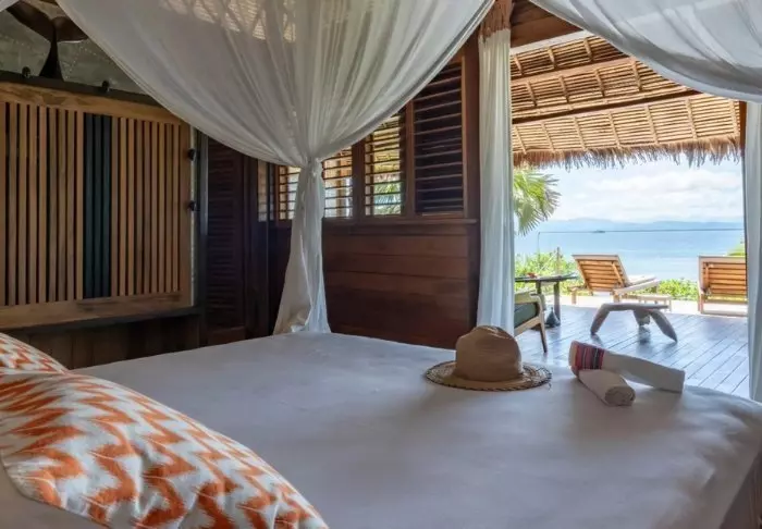Här finns endast 8 bungalows, så om du drömmer om en uppgradering till Tsara Komba måste du boka i god tid! Alla bungalows är byggda i naturliga material för att passa in bland regnskogens palmer, bougainvillea och jasmin, och alla har fantastisk utsikt över havet från verandan. Värt att notera är att det inte finns aircondition (men dock en fläkt), men på äkta madagaskiskt vis kan dörrar och fönster öppnas för att skapa luftcirkulation som svalkar ner sviterna.