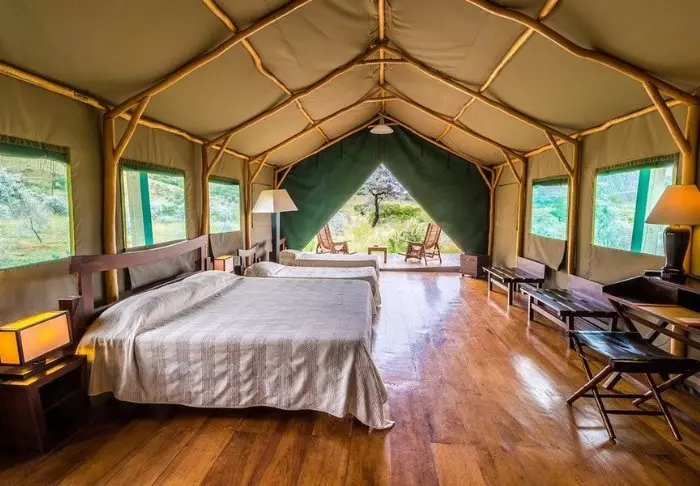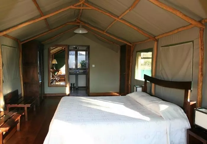 ”Lodge” är förmodligen inte riktigt rätt ord, eftersom det här är ett tältläger med 40 lyxtält i bästa östafrikanska stil med de vackraste trägolven, gott om utrymme, badrum med både inomhus- och utomhusdusch och en privat veranda med solstolar så att du bekvämt kan njuta av utsikten. Lägret ligger på en kulle, och det är gott om utrymme mellan tälten, så det finns en underbar känsla av utrymme överallt, vilket kombineras med en vacker utsikt över det omgivande landskapet.