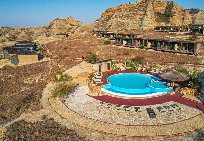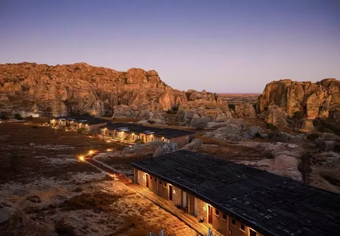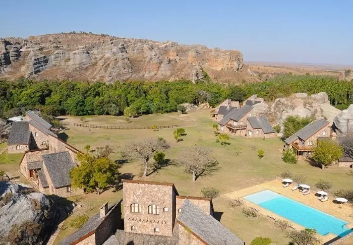 Liksom sitt systerhotell Jardin du Roy är Relais de la Reine byggd av granit, som smälter in väl med det omgivande landskapet i Isalo.