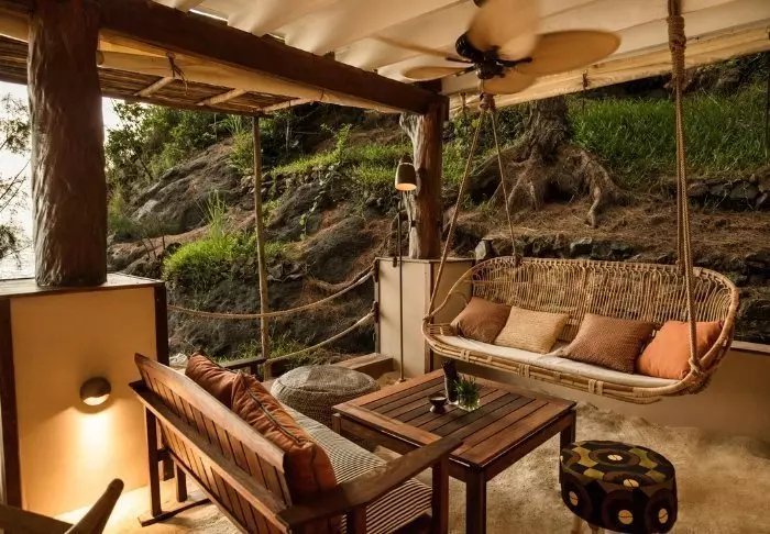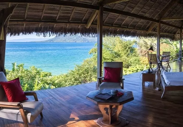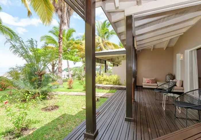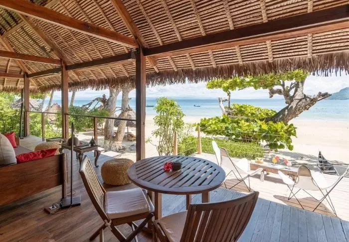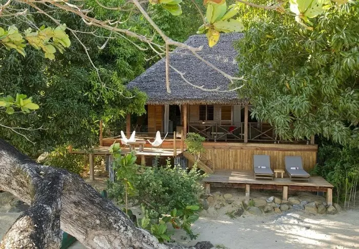 Alla bungalower har egen veranda med utsikt och direkt tillgång till stranden. På verandan finns det möbler för avkoppling, och varje bungalow har dessutom två solstolar på stranden. Inredningen är i klassisk malagassisk stil, rikligt med trä och stora dörrar som kan öppnas för att släppa in vinden för ventilation.