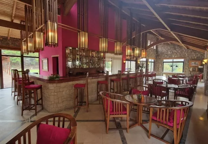 Hotellet har 40 rum och är byggt av granit för att smälta in i omgivningen så mycket som möjligt. Rummen är byggda runt den stora centrala gräsmattan, som har sandstensklippor i ena änden. Här finns det ljus och frisk luft i överflöd, liksom en känsla av att vara nära naturen.