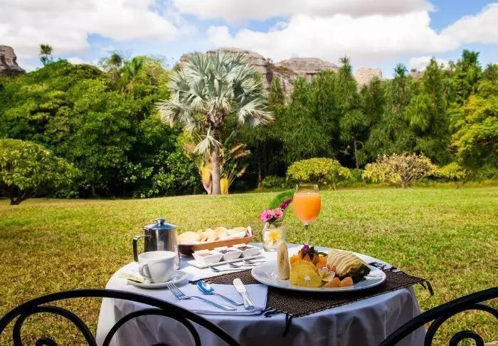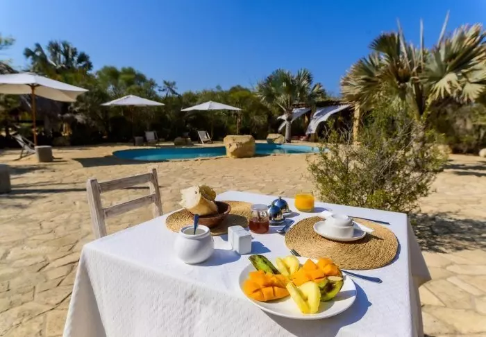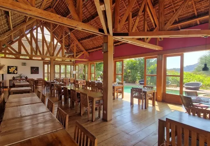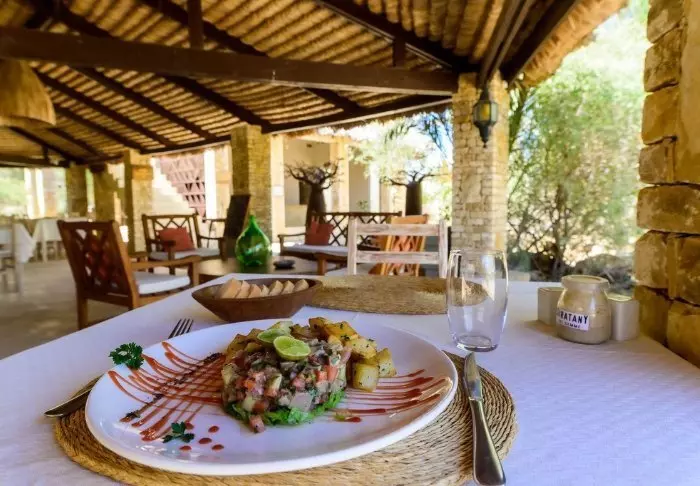 Hotellets restaurang bjuder på en spännande blandning av europeiska och malagassiska smaker. Du kan äta ute på terrassen där solen värmer under dagen, eller njuta av en drink under stjärnorna på kvällen. Frukosten är en upplevelse i sig – med färsk frukt, hembakat, varma rätter och nybryggt kaffe.