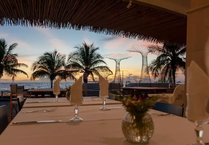 Föreställ dig att du sitter i baren – med tårna i sanden – och sippar på en god drink innan middagen, som självklart är tillagad av de finaste råvarorna. Efteråt promenerar du genom den stilla natten till din egen bungalow (med aircondition, minibar, wifi och TV – om inte vågornas brus är tillräckligt)?