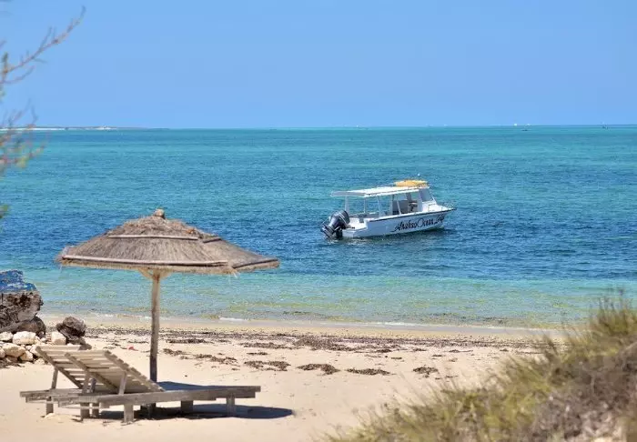 Vattnet är varmt och turkost. Ett par lokala fiskebåtar guppar fram bland vågorna – de har precis återvänt med dagens fångst – hummer, räkor och plattfisk.