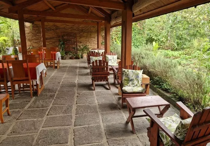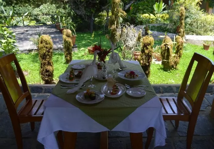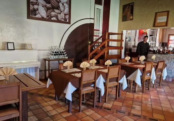 Restaurangen ligger i huvudbyggnaden och serverar hemlagad mat med massor av lokala råvaror – ofta malagassiskt, men med en europeisk touch. Du kan välja att äta på den täckta verandan med utsikt över trädgården och det gröna landskapet.