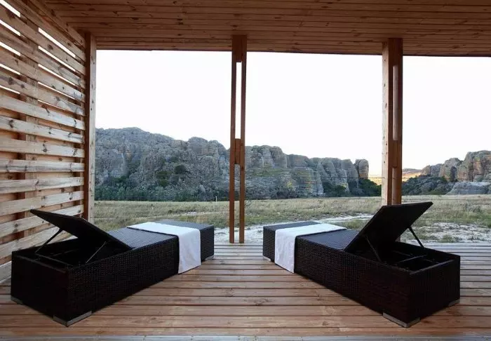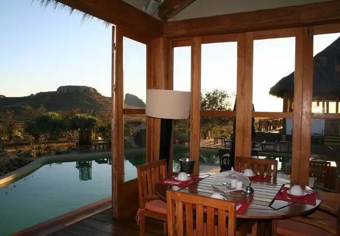 Från poolen kan du skymta havet och Madagaskars eget platåberg, som är lika platt som en pannkaka. Ovanför lobbyn finns en lounge som inbjuder dig att koppla av i soffan, läsa en bra bok och njuta av den vackra utsikten.