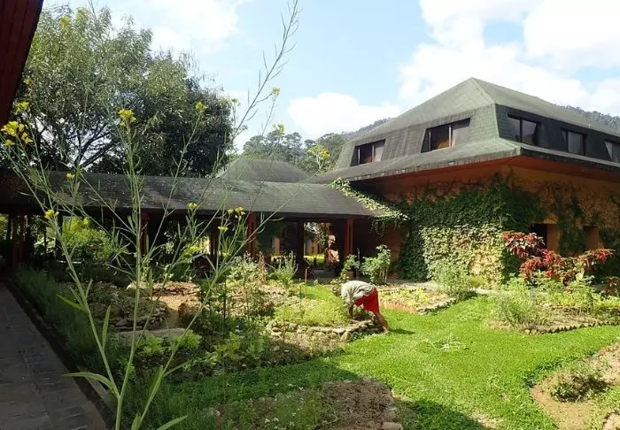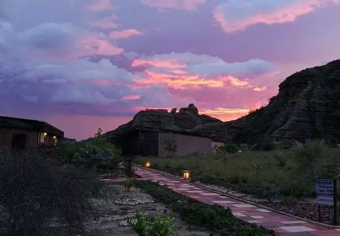 Från utsidan ser lodgen ut som något du förväntar dig att hitta i Barcelona. Gaudís mjuka, organiska former har tydligt inspirerat arkitekten.