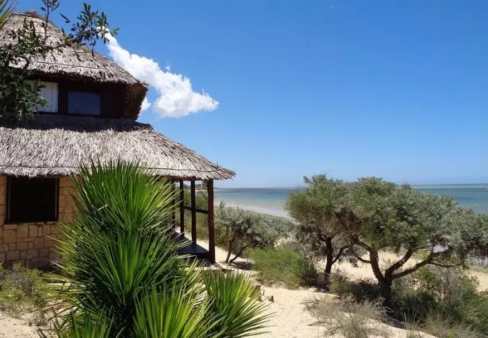 La Renalas 13 bungalower har ett förstklassigt läge vid den breda stranden i Morondava.