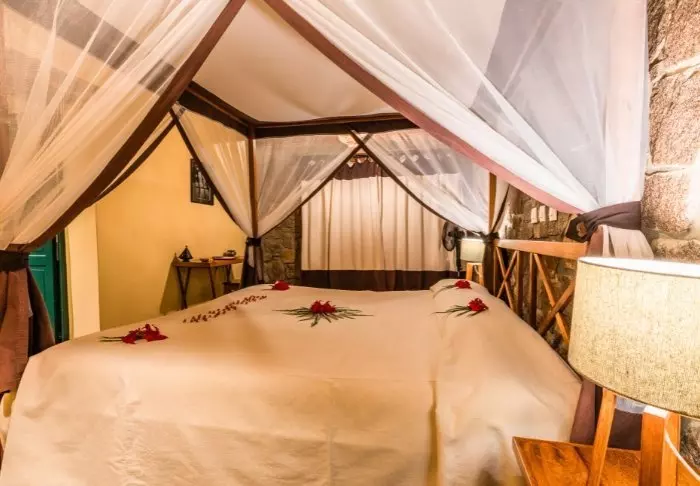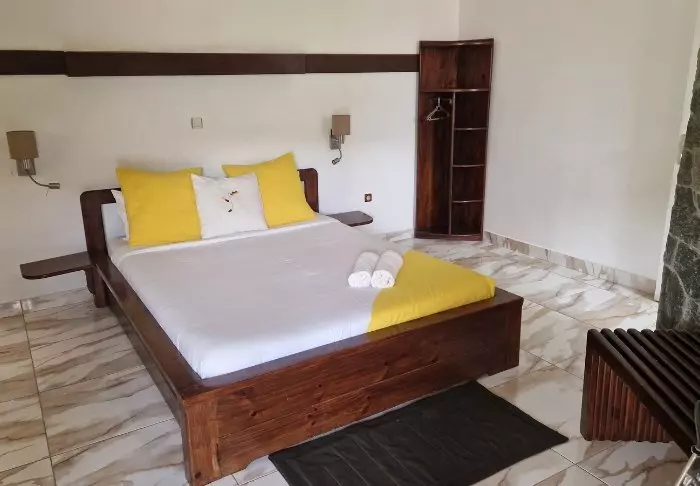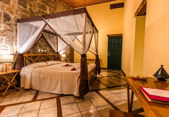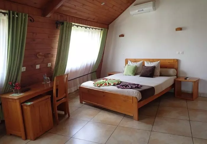 Det finns gott om plats för förvaring av bagaget i rummen, som är stora och smakfullt inredda med malagasisk konst på väggarna. Alla rum har en egen öppen spis, som du kan tända under de kallare månaderna.
