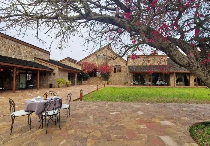 Hotellet ligger på en kulle, och det är fin utsikt över nationalparken från loungen och restaurangen. Rummen ligger bakom själva huvudbyggnaden och nås via stigar genom den lummiga trädgården.