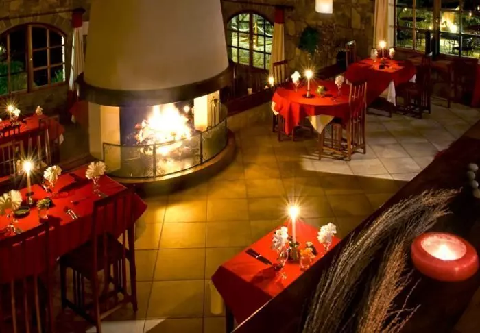 Måltiderna intas i restaurangen, som nästan påminner om ett gemensamt kök på en folkhögskola – med långa bord och en lounge där du kan sitta och koppla av och njuta av en drink före middagen.