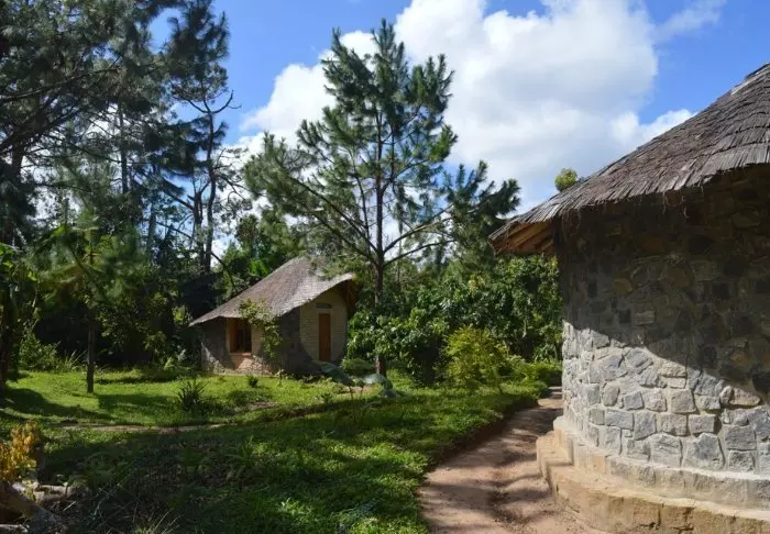Husen är utspridda över ett stort område, som binds samman av smala stigar och kantas av tropiska växter. Här kan du säkert ha turen att få syn på kameleonter på väg till frukosten – och på kvällen kanske till och med en muslemur eller två.