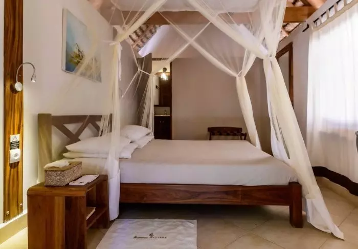 Även om det egentligen är ett flygplatshotell har Nosy Manga en otrolig charm. Alla 33 rum är unikt inredda med konst på väggarna och färgglada kuddar som sätter stilen.