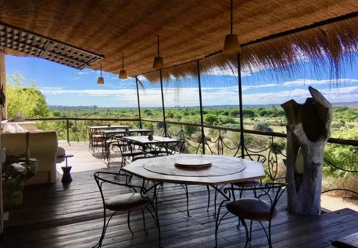 Inne i lodgen kan du tydligt känna influenserna av den afrikanska kontinenten. Bruna färger, trä och sten dominerar, men på ett lyxigt och smakfullt sätt. Allt är vackert dekorerat, och det känns nästan som om du besöker en privat konstsamlare.