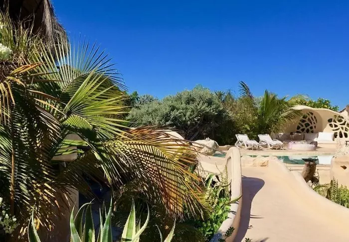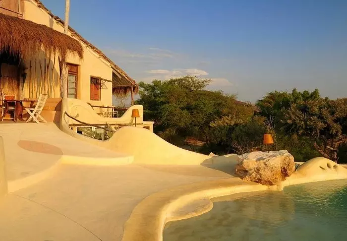 Från utsidan ser lodgen ut som något du förväntar dig att hitta i Barcelona. Gaudís mjuka, organiska former har tydligt inspirerat arkitekten.