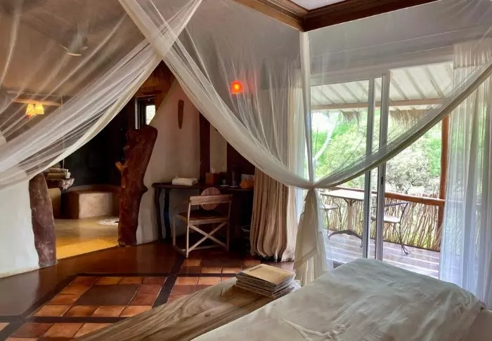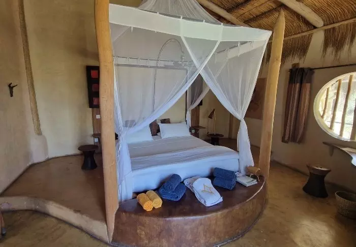 Det finns bara sex rum, så du måste boka i god tid om du vill bo här. Rummen är alla individuellt inredda, var och en med sin egen charm – men i samma stil. Förvänta dig att bli överraskad av rummen – Bakuba är inte en klassisk lodge!