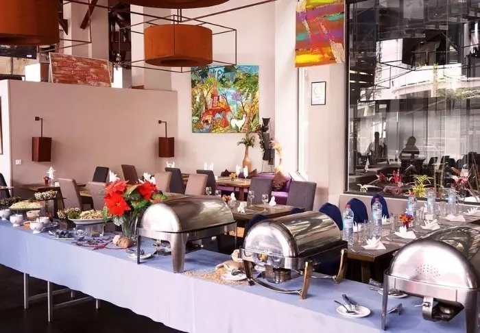 På bottenvåningen hittar du både restaurangen och baren/bistron, som erbjuder både lätta rätter och färgglada cocktails.