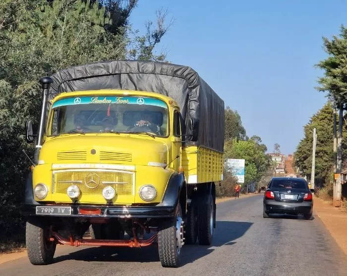 Efter ett par timmars körning genom det lätt kuperade platålandskapet med alla risfält förändras landskapet. Bergen blir högre och skogarna tätare. Föraren navigerar skickligt hårnålskurvorna, och här och där kan du skymta floden nere i dalgången. Trafiken är bra – tills den inte är det. Gamla Mercedes-Benz-lastbilar från den franska kolonialtiden parkeras vårdslöst på sidan av vägen och orsakar ibland trafikstockningar. Eller så är det ett liten stånd vid sidan av vägen som är så populär att trafiken stannar upp helt. “Mura mura” som de säger på Madagaskar – ta det lugnt.