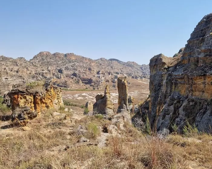 När sandstensklipporna ersätter savannen vet du att du är framme i Isalo.