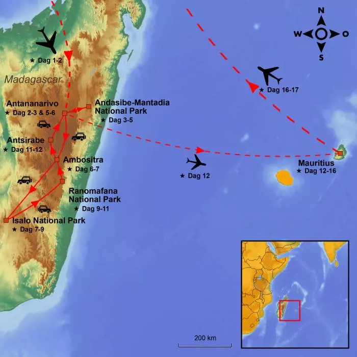 Idag flyger du från din valda flygplats med mellanlandning(ar) på vägen. Resan går till Madagaskar, den stora röda ön i Indiska oceanen och världens fjärde största ö
